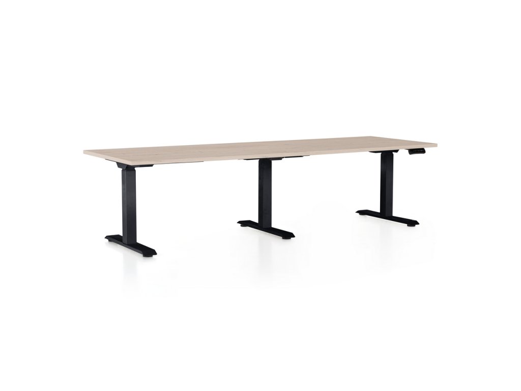 Výškově nastavitelný stůl OfficeTech Long, 240 x 80 cm, černá podnož, dub