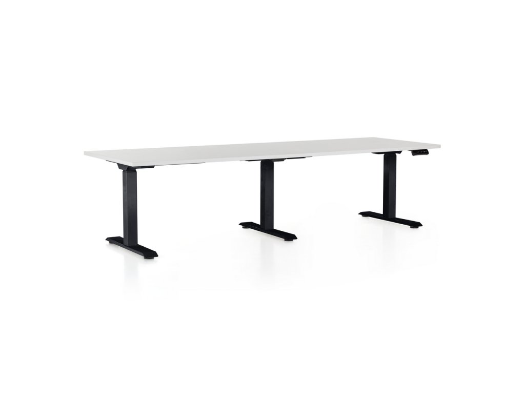 V podstatě se jedná o prodlouženou verzi oblíbené řady OfficeTech D, obohacenou o třetí nohu s integrovaným motorem a dodatečný metr délky. Toto řešení kombinuje osvědčené přednosti původního modelu s rozšířenými možnostmi, které ocení každý, kdo vyžaduje nadstandardní pracovní plochu bez kompromisů v oblasti funkčnosti a designu.