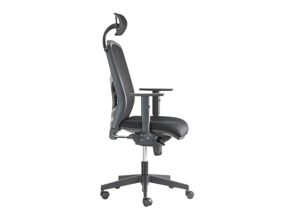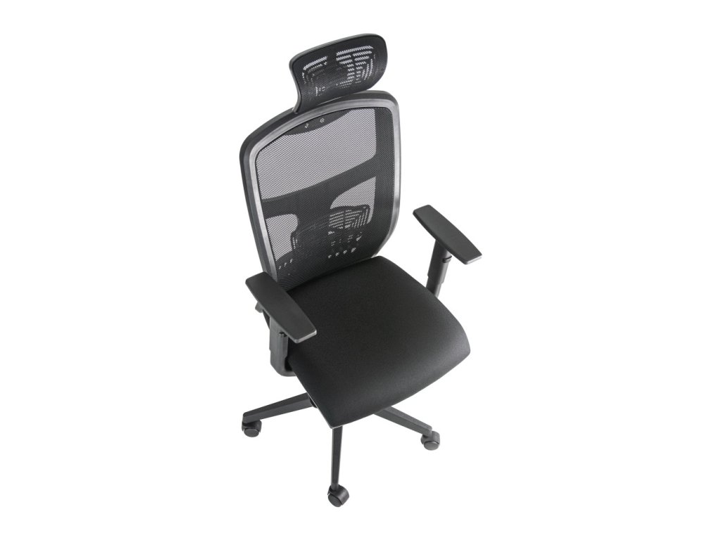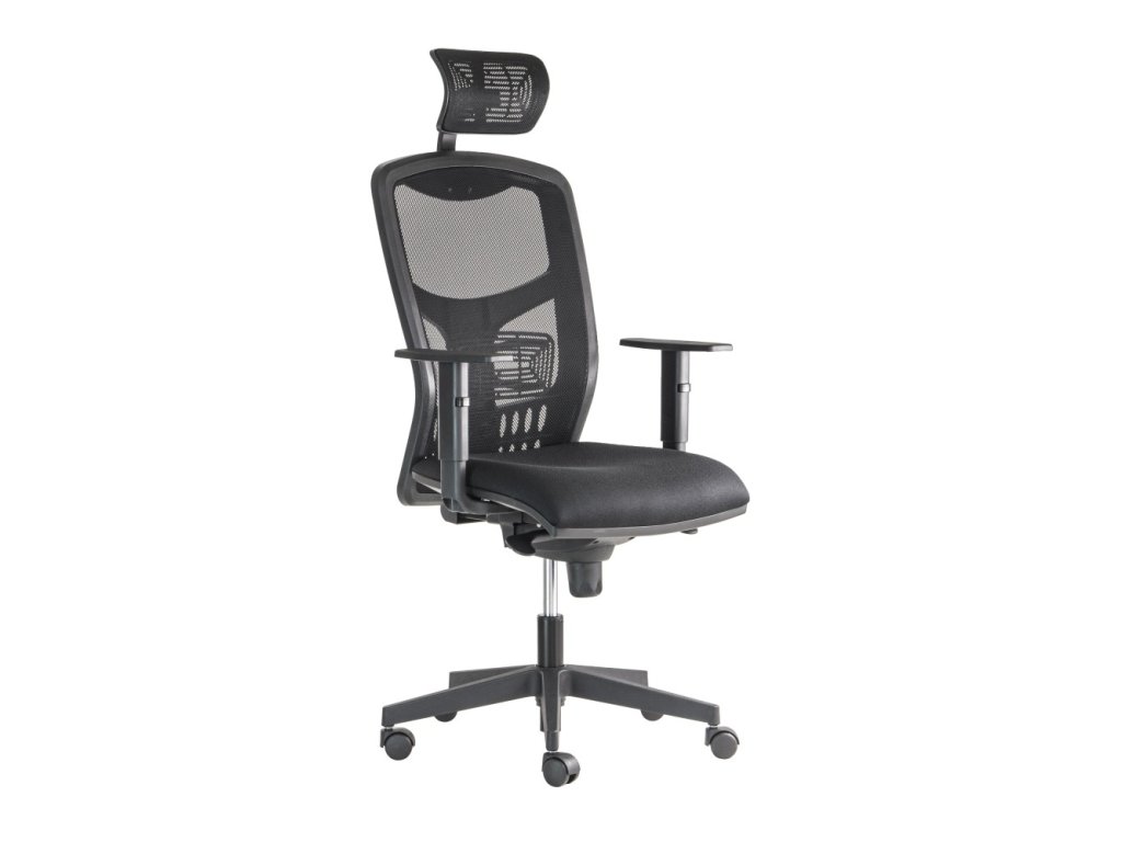 Ergonomická kancelářská židle s pevným, vysoce prodyšným síťovaným opěrákem a plynule nastavitelnou bederní oporou. Pohyb zajišťujeprecizní synchronní mechanika s pětipolohovou aretací a regulací síly přítlaku opěráku (protiváhy) podle vaší hmotnosti. O celodenní pohodlíse stará 3D nastavitelná opěrka hlavy a výškově stavitelné područky s odolným plastovým topem.